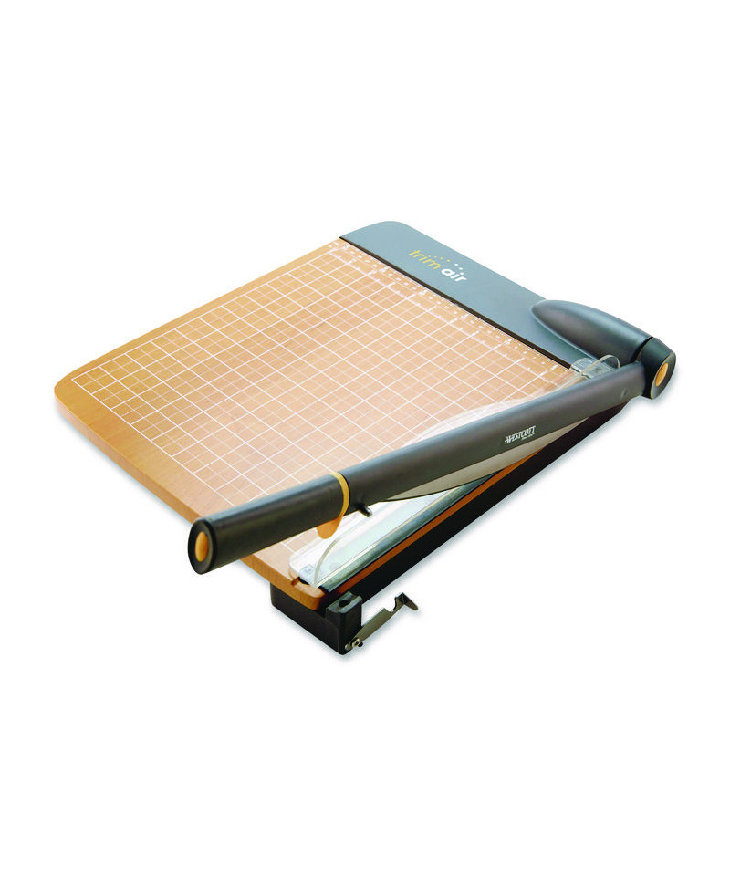 Westcott® TrimAir Guillotine Paper Cutter features a titanium bonded blade that is 3X harder and stays sharp longer than stainless steel. Microban protected handle. Cuts up to 30 sheets of 20 lb paper. Curved blade offers optimal cutting performance.