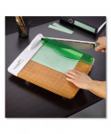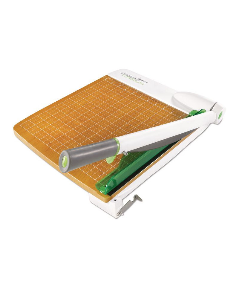 Heavy-duty trimmer is ideal for cutting thick cardstock, layers of paper, photos and more. Carbotitanium bonded blades is 8x stronger than steel easily cuts 30 sheets of 20lb paper. Features a safety lock to keep the blade from moving when not in use or being transported. Alignment grid and on-board measurements in US and metric for precise measuring and accurate trimming. Safety guard keeps the blade from protection when in use. Soft touch, non-slip ergonomic handle.