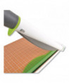 Heavy-duty trimmer is ideal for cutting thick cardstock, layers of paper, photos and more. Carbotitanium bonded blades is 8x stronger than steel easily cuts 30 sheets of 20lb paper. Features a safety lock to keep the blade from moving when not in use or being transported. Alignment grid and on-board measurements in US and metric for precise measuring and accurate trimming. Safety guard keeps the blade from protection when in use. Soft touch, non-slip ergonomic handle.
