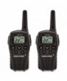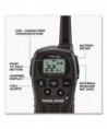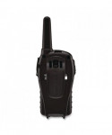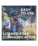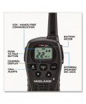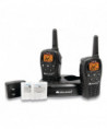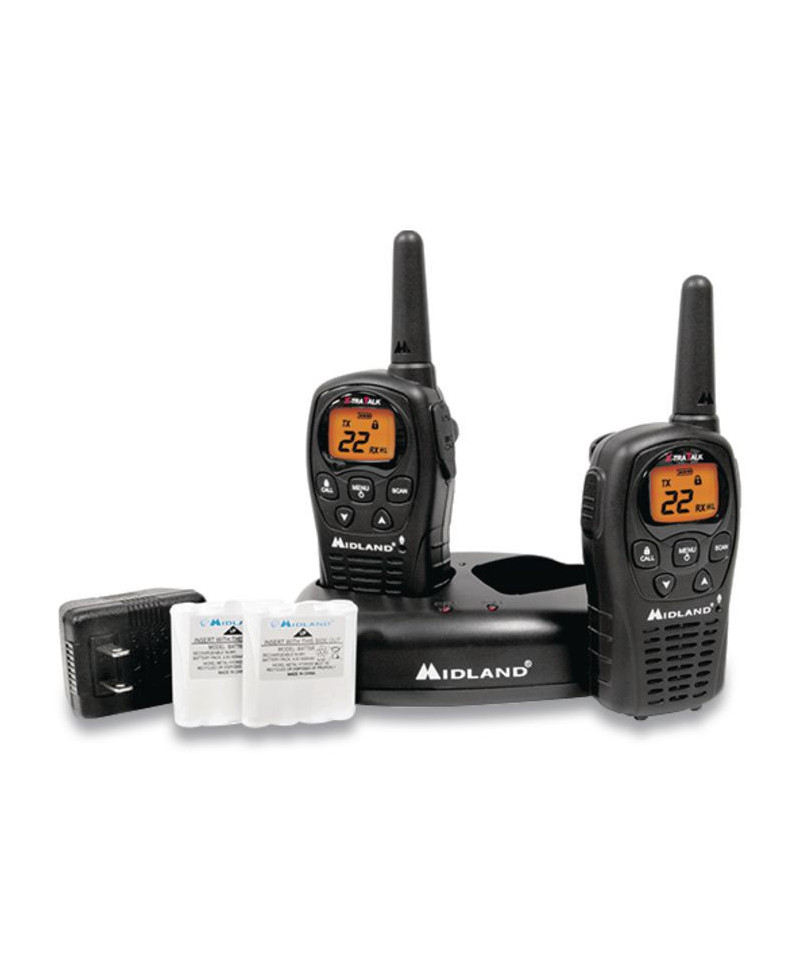 Made of water resistant material to use in harsh environment. 22-channel operation with up to 24-mile range, longer range communication in open areas with little or no obstruction. One call alert tone notifies you of incoming calls within your group. Dual-power options; uses 4 AAA batteries (not included) or rechargeable lithium-ion battery pack (included). HI/LO power settings let you adjust transmit power and conserve battery life. Automatically checks channels for activity. Silent operation turns off all tones for quiet operation. Keypad lock, locks in your selected settings. Auto squelch removes annoying background noise.