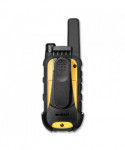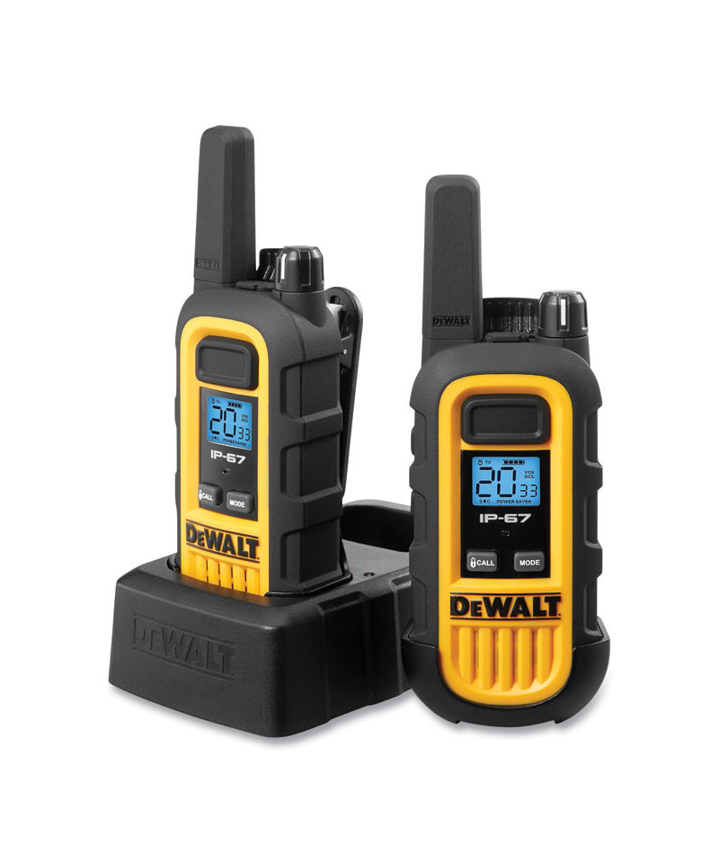 These FRS radios have 22 channels with blue backlit LCD display for easy viewing. They offer coverage of 250,000 square feet up to 20 floors with hands free communication (VOX). For assured handling they have an anti-slip design and are shock resistant, withstanding up to a 2-meter drop. A charging dock is included for convenient drop in charging. These radios do not require a license or service fees due to high quality band frequencies. A unique circuit extends the life of the batteries as if there are no transmissions within 10 seconds, the radio will automatically switch to battery save mode. 121 privacy codes are included. The IP167 rating provides dust and waterproof resistance. The 180 degree swivel holster allows for sideways rotation for multiple position use.