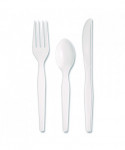 Heavyweight Polystyrene Cutlery, Fork/Knife/Teaspoon, Plastic, White, 250/Carton