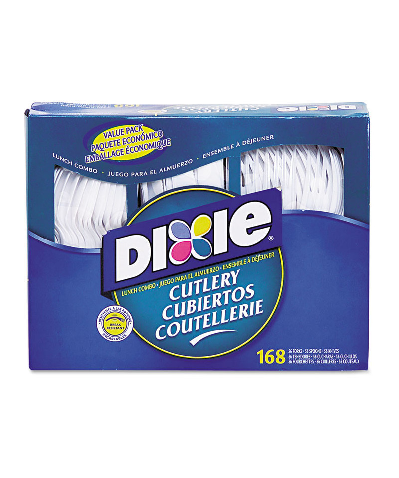 Includes 168 pieces per pack-56 each of forks, knives and teaspoons.