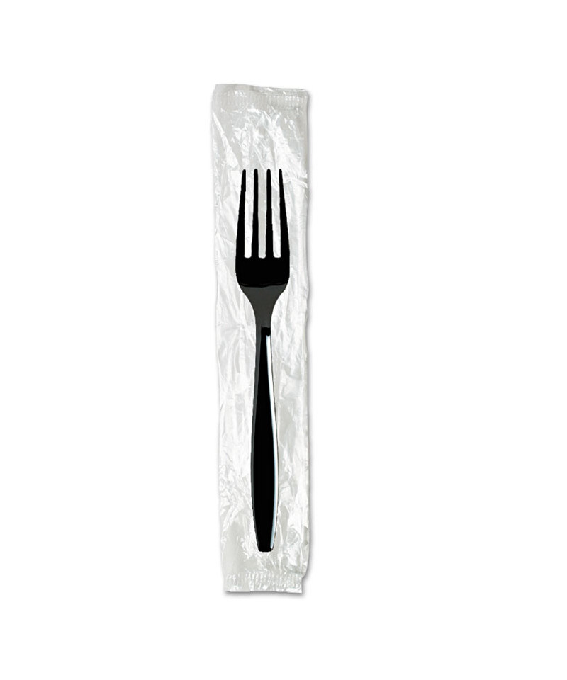 Individually Wrapped Heavyweight Forks, Plastic, Black, 1,000/Carton