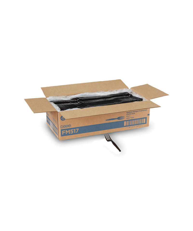 Plastic Cutlery, Heavy Mediumweight Forks, Black, 1,000/Carton