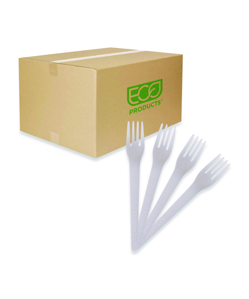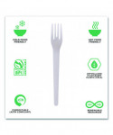 Plantware Compostable Cutlery, Fork, Plastic, Pearl White, 50/Pack, 20 Packs/Carton