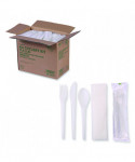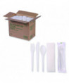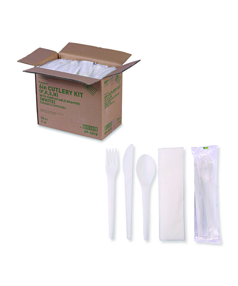 Plantware Compostable Cutlery Kit, Fork/Knife/Napkin/Spoon, Pearl White, 250 Kits/Carton