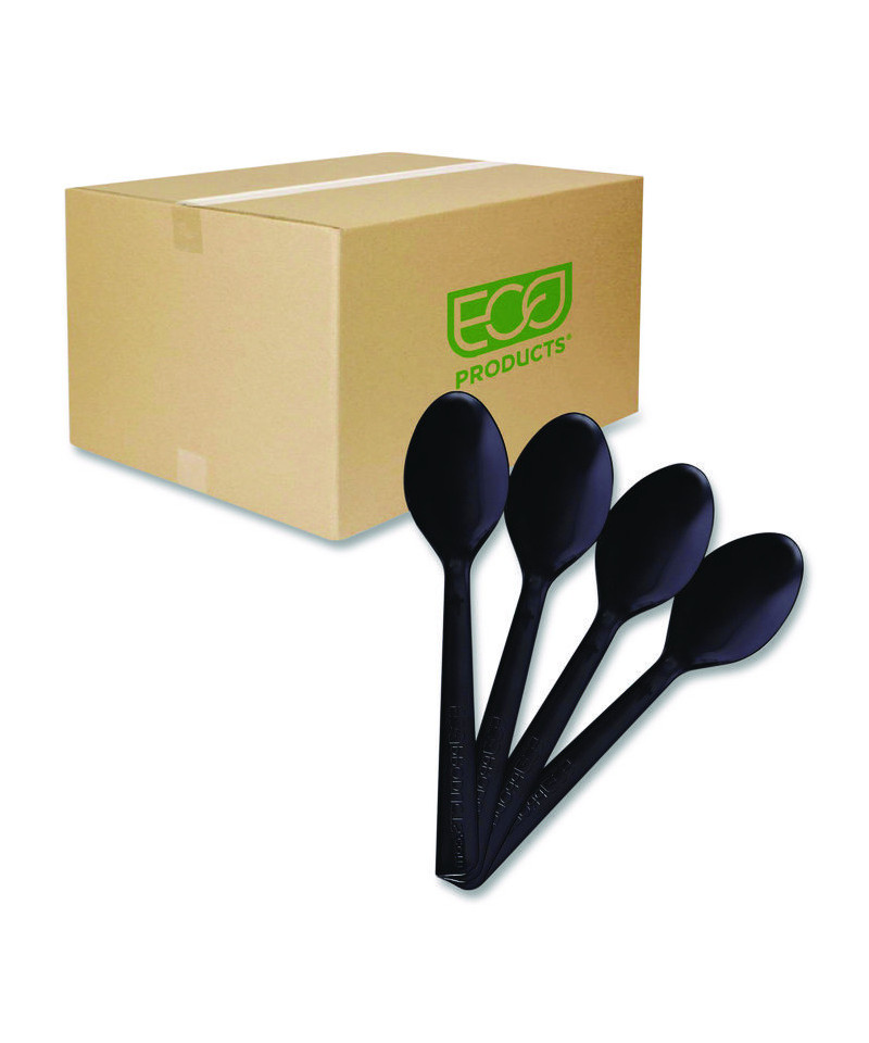 100% Recycled Content Cutlery, Spoon, Plastic, Black, 50/Pack, 20 Pack/Carton