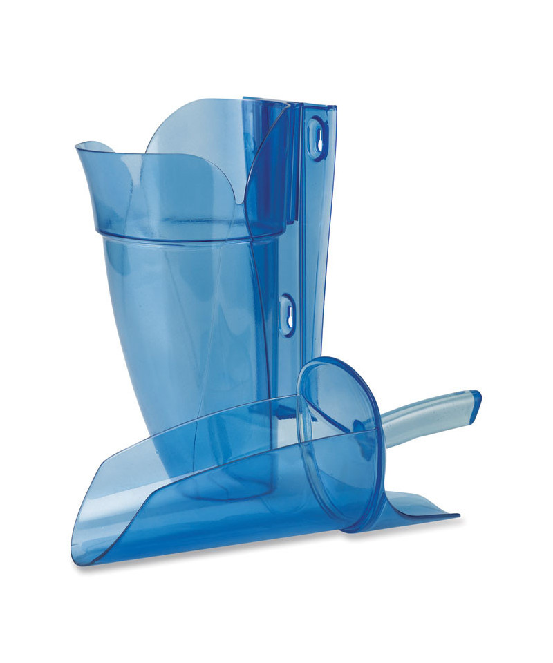 Saf-T-Scoop and Guardian System makes refilling ice totes easier than ever. Dome-shaped scoop is specially designed to allow mounding of ice without spilling, so you get more ice per scoop. Ergonomically angled handle allows your hand more comfort and balance while lifting the scoop, while angled chute directs ice straight into the ice tote, preventing spillage and keeping ice off of the floor. Handy guardian provides a secure storage place for the scoop and mounts easily on the inside or outside of ice bins. Both the scoop and the guardian are made of durable, dishwasher safe, polycarbonate material.