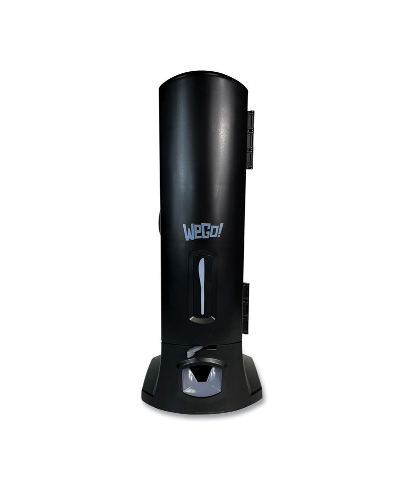 Innovative cutlery dispenser with single touchpoint at the handle of the cutlery piece. Germ-free cutlery. WeGo dispenser is one of the most sanitary options available in dispensed cutlery. WeGo cutlery is needed for proper use of the WeGo dispenser. Easy three-step reload. Modern design. Dispense-right technology. Easily can be taken on the go. Perfect for a setting that entails catered events, concession stands, snack shacks, and office breakrooms.