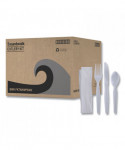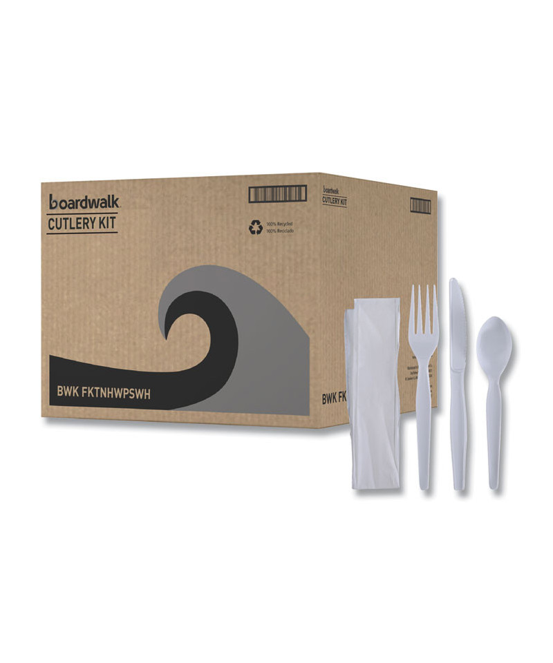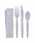 Make set-up or packing easier with an all-in-one cutlery set. Each set includes a fork, spoon, knife, and napkin, allowing you to cover all your single serving needs with one, high-quality item. Individually packaged for convenience and to ensure utensils remain sanitary, even after handling. High-quality, economical design is perfect for most meals. Neutral color options allow for use in a variety of settings, from office parties to event catering.
