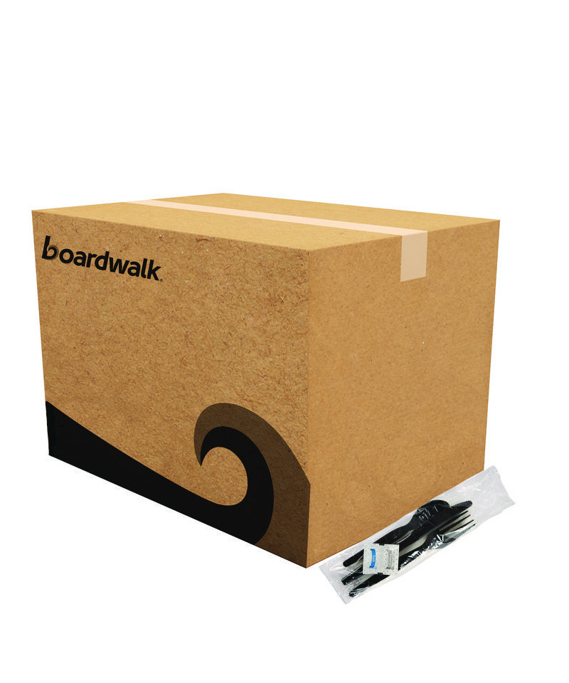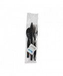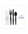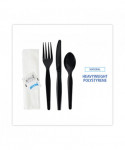 Six-Piece Cutlery Kit, Heavyweight, Fork/Knife/Napkin/Pepper/Salt/Spoon, Plastic, Black, 250/Carton