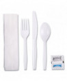 Make set-up or packing easier with an all-in-one cutlery set. Each set includes a fork, spoon, knife, napkin, salt, and pepper, allowing you to cover all your single serving needs with one, high-quality item. Individually packaged for convenience and to ensure utensils remain sanitary, even after handling. High-quality, economical design is perfect for most meals. Neutral color options allow for use in a variety of settings, from office parties to event catering.