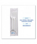 Six-Piece Cutlery Kit, Mediumweight, Fork/Knife/Napkin/Pepper/Salt/Spoon, Plastic, White, 250/Carton