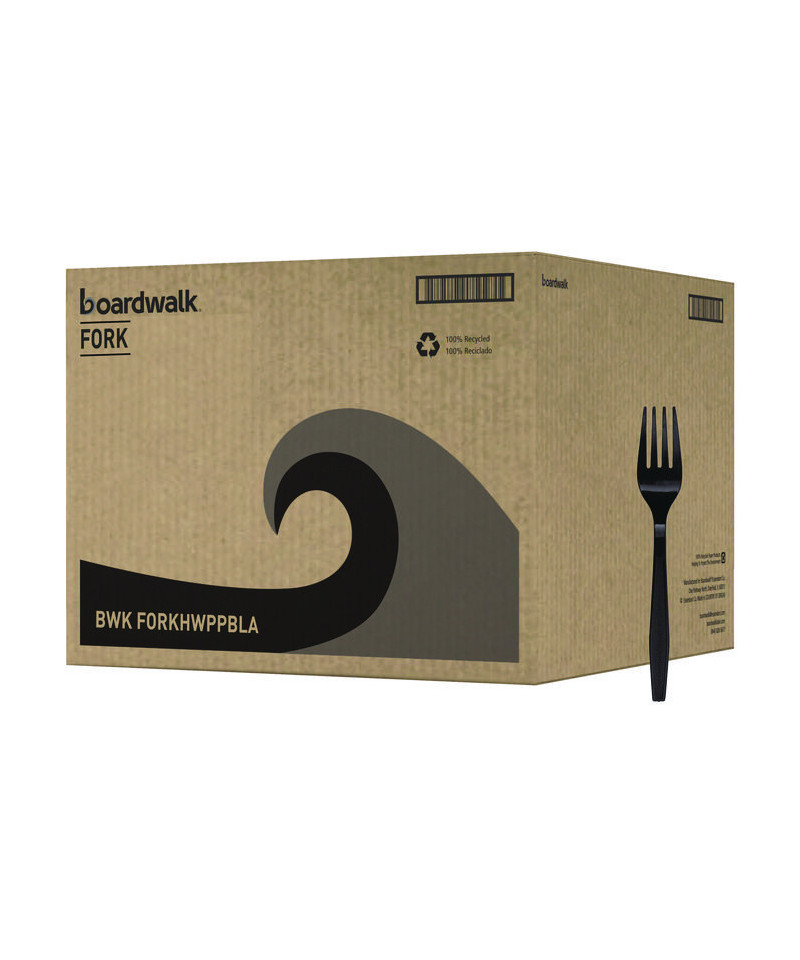 Heavyweight Polypropylene Cutlery, Fork, Plastic, Black, 1,000/Carton