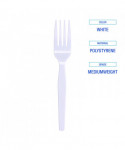 Mediumweight Polystyrene Cutlery, Fork, Plastic, White, 100/Box, 10 Boxes/Carton