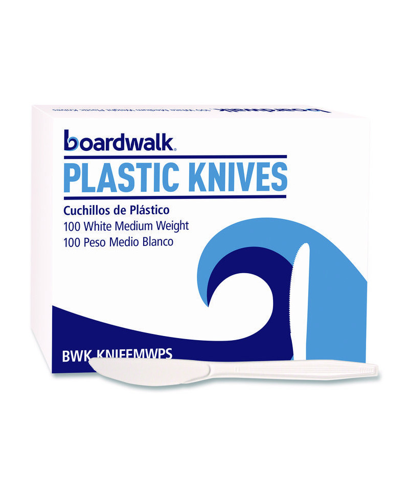 Mediumweight Polystyrene Cutlery, Knife, Plastic, White, 100/Box
