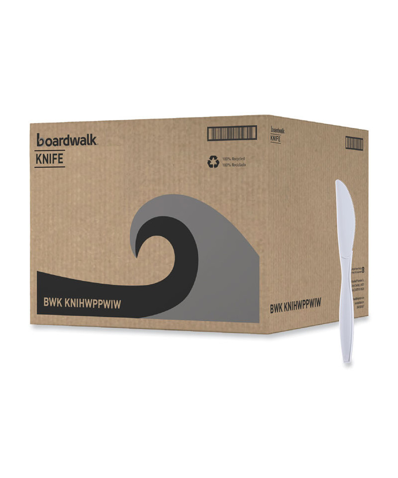Heavyweight Wrapped Polypropylene Cutlery, Knife, Plastic, White, 1,000/Carton