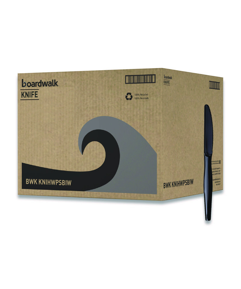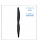 Heavyweight Wrapped Polystyrene Cutlery, Knife, Plastic, Black, 1,000/Carton