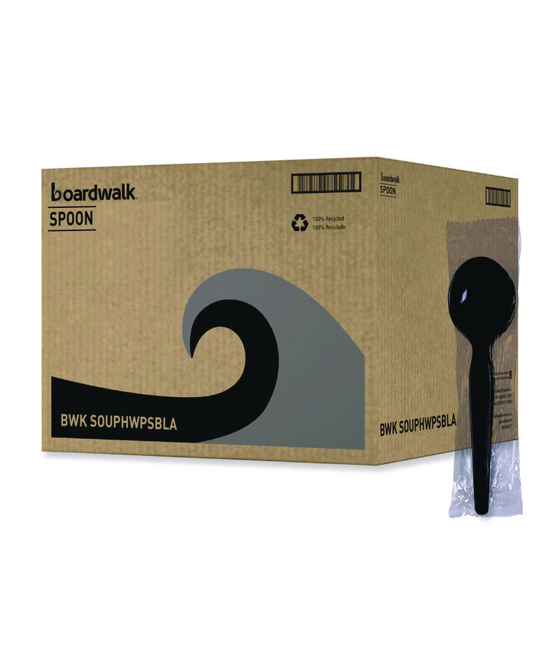 Heavyweight Polystyrene Cutlery, Soup Spoon, Plastic, Black, 1,000/Carton