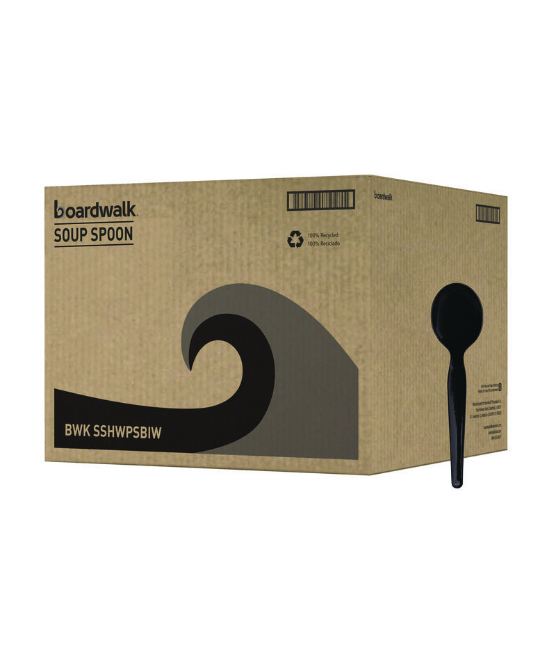 Heavyweight Wrapped Polystyrene Cutlery, Soup Spoon, Plastic, Black, 1,000/Carton