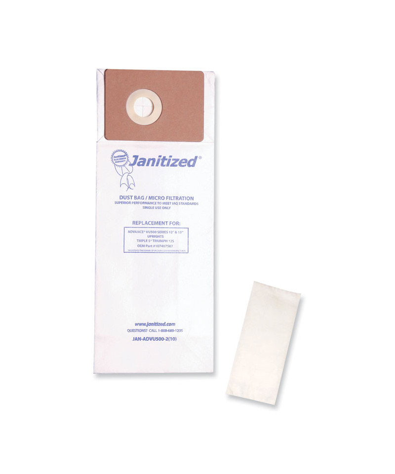 Designed specifically for commercial use. Premium filters and vacuum bags that meet or exceed OEM filter efficiency. Each filter bag is printed to easily identify the vacuum it fits. Proper filtration is vital when cleaning to prevent allergen and harmful particulates from being released back into the air. Janitized Vacuum Filter Bags provide indoor air quality, worker safety and facility clean air management.