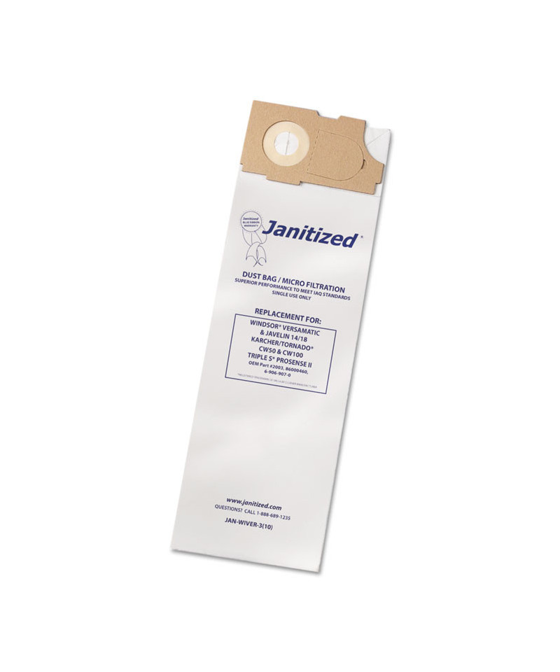 Designed specifically for commercial use. Premium filters and vacuum bags that meet or exceed OEM filter efficiency. Each filter bag is printed to easily identify the vacuum it fits. Proper filtration is vital when cleaning to prevent allergen and harmful particulates from being released back into the air. Janitized Vacuum Filter Bags provide indoor air quality, worker safety and facility clean air management.