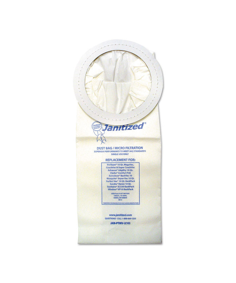 Designed specifically for commercial use. Premium filter bags that meet or exceed OEM filter efficiency. Each filter bag is printed to easily identify the vacuum it fits. Proper filtration is vital when cleaning to prevent allergen and harmful particulates from being released back into the air. Janitized® Vacuum Filter Bags provide indoor air quality, worker safety and facility clean air management.