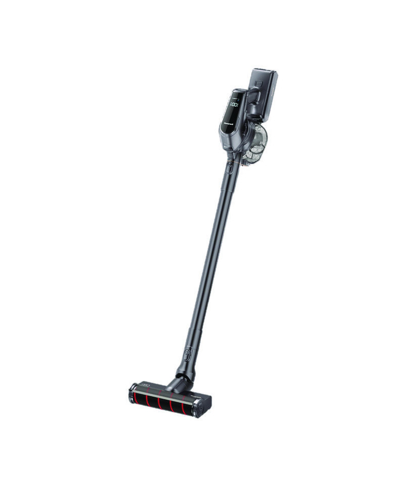 Experience powerful suction in a lightweight form with the Honeywell VC16 Aeromax Pro cordless vacuum. This handheld vacuum includes eight tools for optimal cleaning convenience, with its lightweight, cordless design making it easy to carry around and clean every corner. The advanced 600 W digital motor technology delivers powerful suction up to 185 air watts, optimizing energy efficiency. Vacuuming becomes more enjoyable thanks to the innovative tangle-resistant design. For greater clarity, a full-length natural Brite White LED light strip adorns both the carpet and hard floor rollers, with an additional LED spotlight on the handheld body. The vacuum also features advanced cyclonic tank design, which, combined with the HEPA filter, provides up to 99.9% dust and air separation. The innovative ISC technology further boosts self-cleaning, maintaining the efficiency of the HEPA filter. Comfort is prioritized with the ergonomic wellness design, which naturally accommodates the wrist during use. The easy change, high-capacity battery pack provides up to 60 minutes of run time. An advanced LCD display enables easy one-touch control for effortless management of speed and power, with an easy one-press disposal feature for swift dustbin emptying. The vacuum also includes a motorized, patent-pending rotary brush for improved cleaning efficiency, and scented beads for a more pleasant aroma. With its innovative bendable flex hose designed to stay in place, cleaning hard-to-reach places is easier than ever with the Honeywell VC16 Aeromax Pro cordless vacuum.