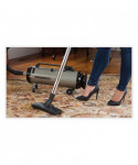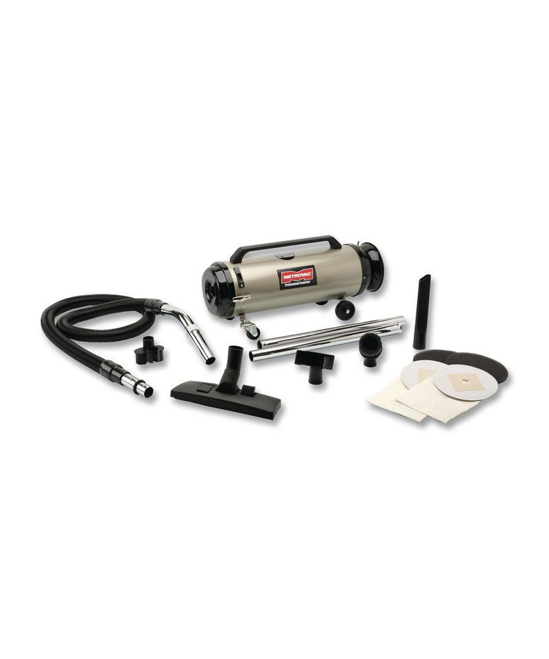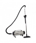 This high tech cleaning system with HEPA filter provides four stages of filtration for a dust-, allergen-free environment. Offers professional cleaning results without hiring a professional. Powerful 4.0 Peak HP, twin-fan motor designed for super suction, saves time, and provides more power than vacuums selling at twice the price. Includes a power conductive flexible hose, four chrome/steel extension wands (two with locks), heavy-duty electric power nozzle, floor/wall brush, dust brush, crevice tool, fabric tool, three disposable bags and two charcoal foam filters.
