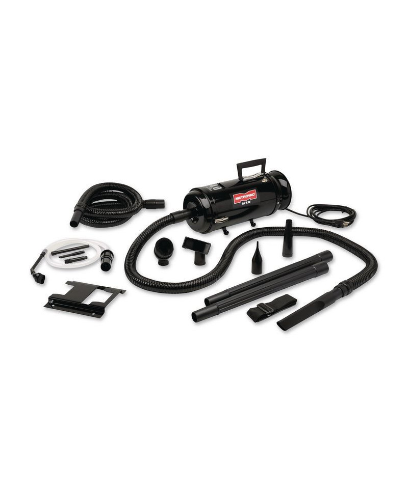 An industrial quality motor producing an almost unbelievable 95" of water lift (the standard measure of vacuum efficiency). The first choice of professional detailers nationwide. Provides exceptional power and versatility. You can use it as a blower to inflate air mattresses, rafts or even to clear those pesky leaves from your driveway. Includes dual power unit with wheels, wall mounting bracket, 24 ft feet of hose (four- to six-foot lengths), two 20" extension wands, four-piece micro detailing kit, shoulder strap, blower nozzle, floor brush, inflator adapter, Pik-All upholstery nozzle, dust brush, crevice tool, hose bracket, attachment holder, three paper bags, 12 ft grounded cord set.
