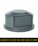 Trash can dome lid fits Rubbermaid BRUTE trash cans (sold separately). All-plastic, professional-grade construction will not rust, chip, or peel, and resists dents.