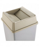 Hygienic top for handsfree waste disposal. Drop-and-swing design provides easy access for refuse disposal and then quickly returns to hide refuse from public view. Crack-resistant plastic. Controls waste, odors and smoking debris.