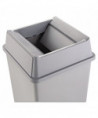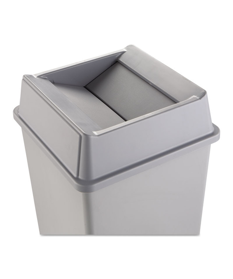 Hygienic top for handsfree waste disposal. Drop-and-swing design provides easy access for refuse disposal and then quickly returns to hide refuse from public view. Crack-resistant plastic. Controls waste, odors and smoking debris.