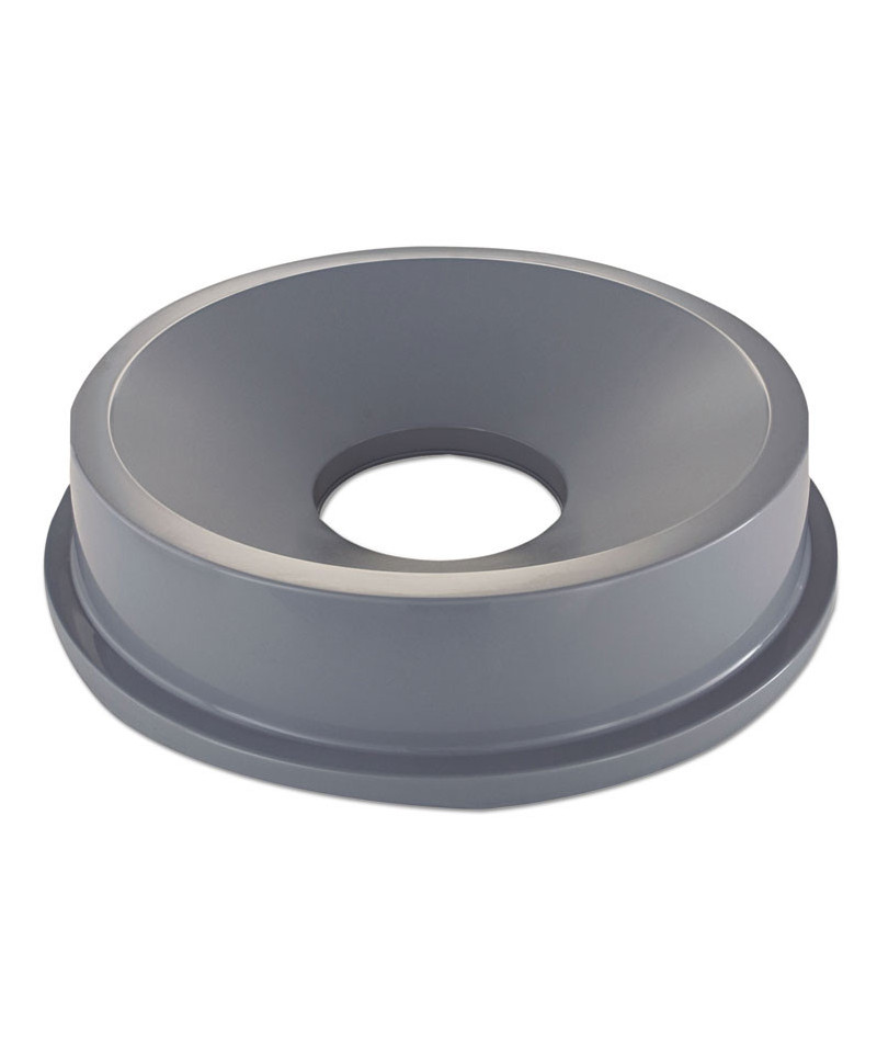 The Rubbermaid® Commercial Trash Can Funnel Top fits heavy-duty 32 gallon Rubbermaid® trash cans (sold separately). This trash can lid is round, injection-molded, and resists moisture and certain chemicals. An ultraviolet (UV) stabilizer minimizes fading and discoloring.