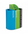 Lids for a configurable and customizable recycling center. Sturdy steel construction with a powder-coated finish for added durability. Color enhances décor or use to easily designate waste or recycling option. Easy to clean.