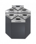 Sleek, stainless steel triangular lid has laser-cut inscription (unless otherwise specified) to identify recyclables. Part of Trifecta™ flexible design with four receptacles (sold separately), they offer a multitude of configurations to accommodate any workplace.