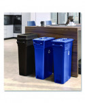 This bottle and can lid, made of durable resin construction, is designed to fit Suncast Commercial® 23 gallon slim trash cans. This lid features a practical design for everyday use. The dual opening makes it easy to keep waste and recycling separate.
