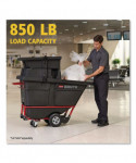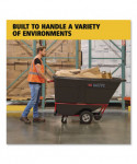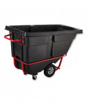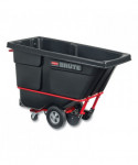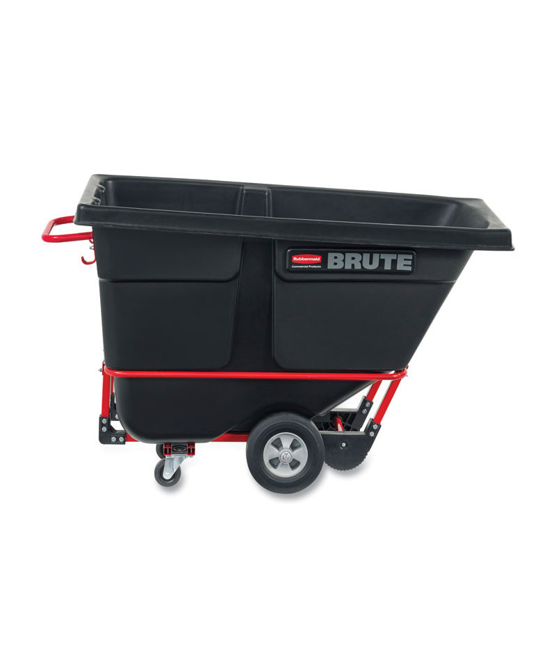 Rubbermaid Commercial Rotomolded Tilt Truck features industrial-strength construction and several use-convenience features to transport the heaviest loads easily and reliably. Constant force fulcrum design allows for controlled dumping by one person, and the DuraTilt™ steel frame allows the truck to stay stable while in the tilted position, making both the dumping and cleaning process easier than it would be with traditional metal frames. Seamless, one-piece molded-plastic body won't rust, dent, pit, chip or peel, making it a snap to clean and maintain. Center-mount, 5-inch swivel-back casters and inset, 12-inch blow-molded polypropylene wheels ensure easy maneuvering down hallways, through doorways and onto elevators, while they and the steel frame remain fully set back from the truck's body to minimize the potential for damaging walls, corners and anything or anyone that might be in the vicinity. Optional domed lids sold separately.