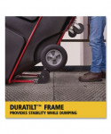 Industrial-strength truck transports heavy loads with ease. Constant force fulcrum design allows for controlled dumping by one person, and the DuraTilt™ steel frame allows the truck to stay stable while in the tilted position, making both the dumping and cleaning process easier than it would be with traditional metal frames. Seamless, one-piece molded-plastic body won't rust, dent, pit, chip or peel. Easy to clean and maintain.