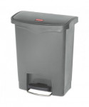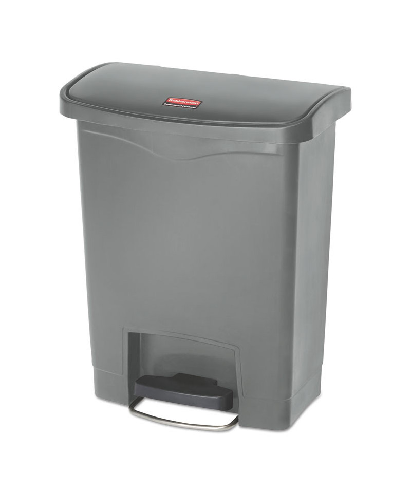 Slim Jim Streamline Resin Step-On Container, Front Step Style, 8 gal, Polyethylene, Gray