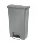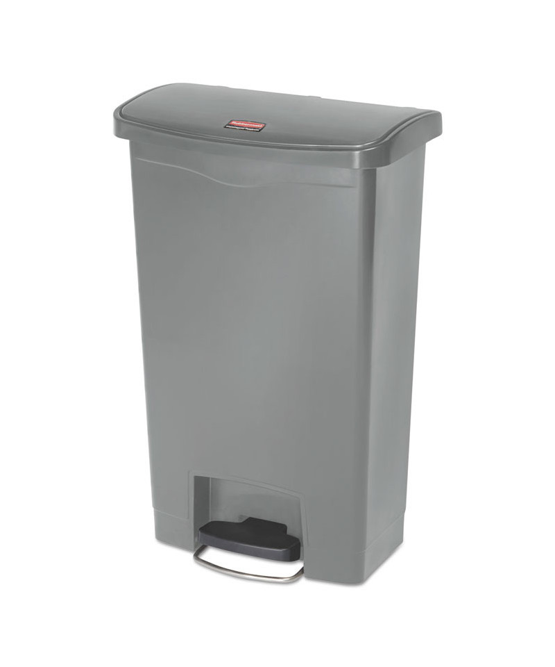 Slim Jim Streamline Resin Step-On Container, Front Step Style, 13 gal, Polyethylene, Gray