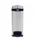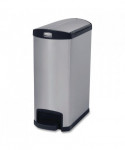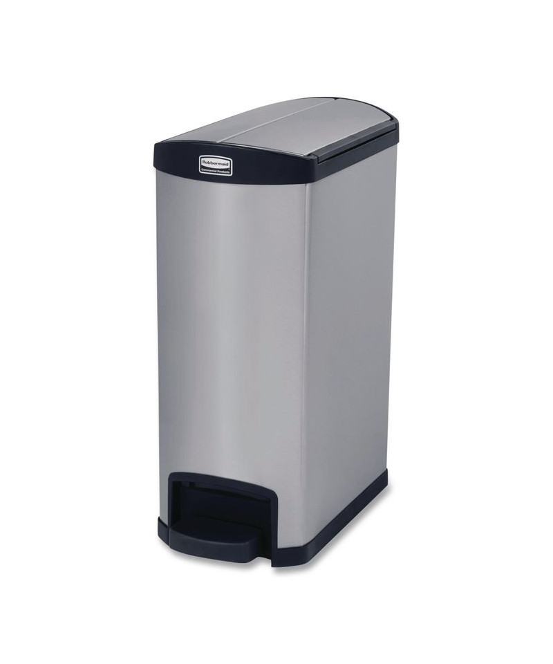 Designed to satisfy the diverse needs of any facility. Maximizes space efficiency with a small footprint and slim profile. Fits in even the tightest spaces. Fingerprint resistant stainless steel is easy to maintain for enhanced aesthetics. Internal hinge design prevents wall damage. Quiet and controlled lid-closure minimizes noise. Liner retainer band and cinch easily and securely holds can liners. Increased foot pedal clearance for easier access and operation.