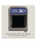 Provides a customizable recycling solution with sleek, smooth surfaces and contoured edges. Modern appearance fits seamlessly into any indoor or outdoor commercial environment. Magnetic connection keeps the containers arranged in the order that best fits the space, in a row or an island. Easy-access front door and handle allow for ergonomic emptying of waste. Internal door hinge prevents unsightly wall damage and helps maintain a neat, clean appearance. Rigid plastic liner with handle has built-in venting channels that create airflow. Secure liner bags with integrated liner cinches, allowing for knot-free liner changes. Shipped fully assembled.