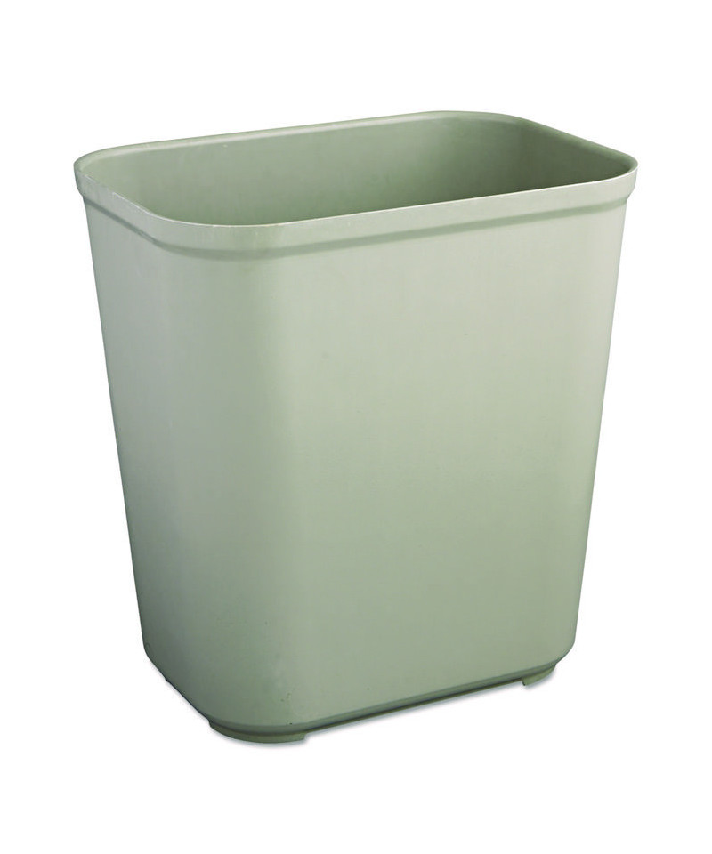 The Rubbermaid Commercial Fire-Resistant Trash Can features a contemporary shape with a UL rating. This trash can is a rectangular, liquid-injected, thermoset polyester garbage can with a textured finish and smooth corners and contours for cleaning. Thermoset polyester is resistant to heat and impact. The trash can's textured finish helps hide surface scratches.