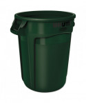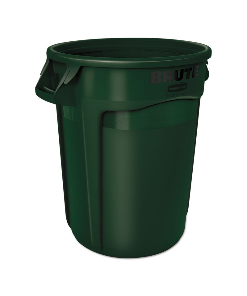 Vented Round Brute Container, 32 gal, Plastic, Dark Green