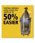 Sets the standard for reliable garbage collection in high traffic areas. Built tough and versatile, these garbage cans feature revolutionary venting channels that let air flow into the receptacle making liners up to 50% easier to remove. Integrated cinches allow bags to be attached to handles without knots for faster liner changes while contoured base handles and rounded top handles make it easier for staff to lift and transport these receptacles in any facility.