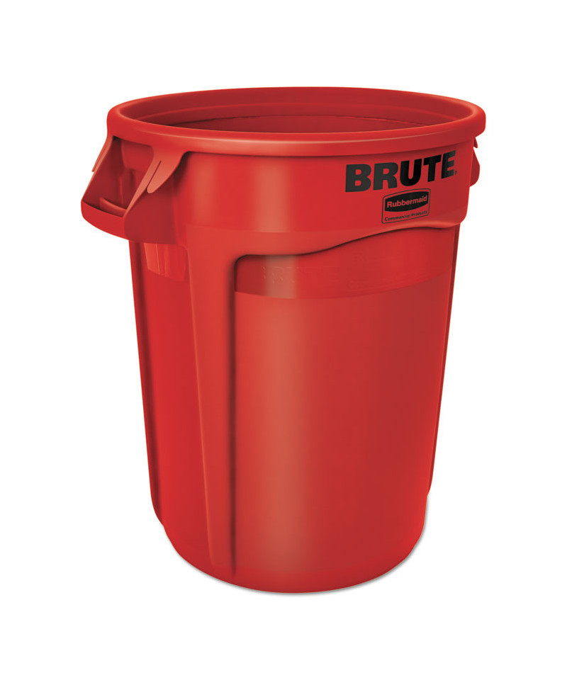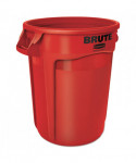 Vented Round Brute Container, 32 gal, Plastic, Red