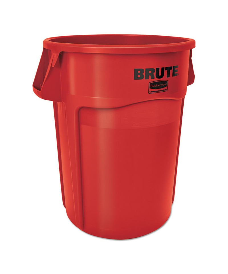 Vented Round Brute Container, 44 gal, Plastic, Red