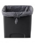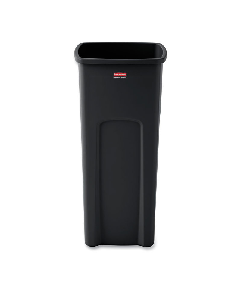 Untouchable® large plastic square waste receptacle features a sleek design for a professional image that's ideal for centrally located collection areas. Patent-pending cinch keeps your can-liner in place, eliminating the need to resize the opening by tying a knot. Durable, crack-resistant shell holds up, even under tough indoor/outdoor conditions. Compatible with variety of swing-top lids -- sold separately.